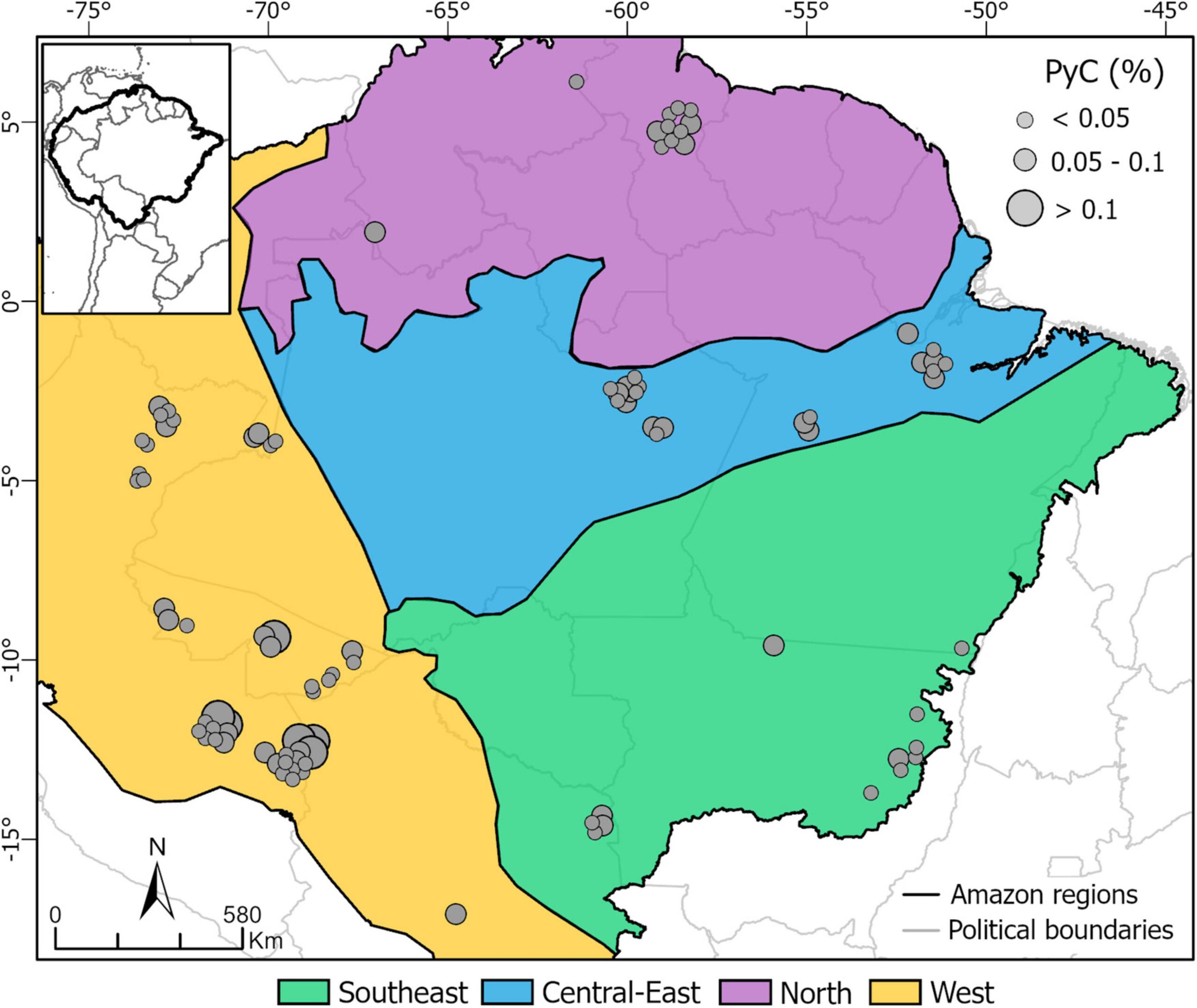 - Regions richer in pyrogenic carbon appear to have higher soil fertility and water-holding capacity, helping the forest to get through dry periods without enduring the usual damage.