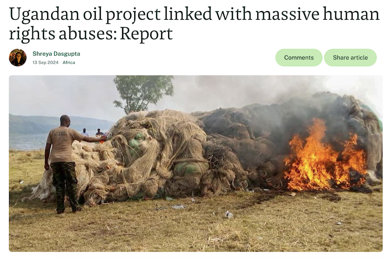 The report particularly decries the installation of oil facilities on the shores of Lake Albert without adequate investment in mitigation measures for the Tilenga and Kingfisher areas. According to the report, they pose major threats to the environment, water and health of communities around the lake.