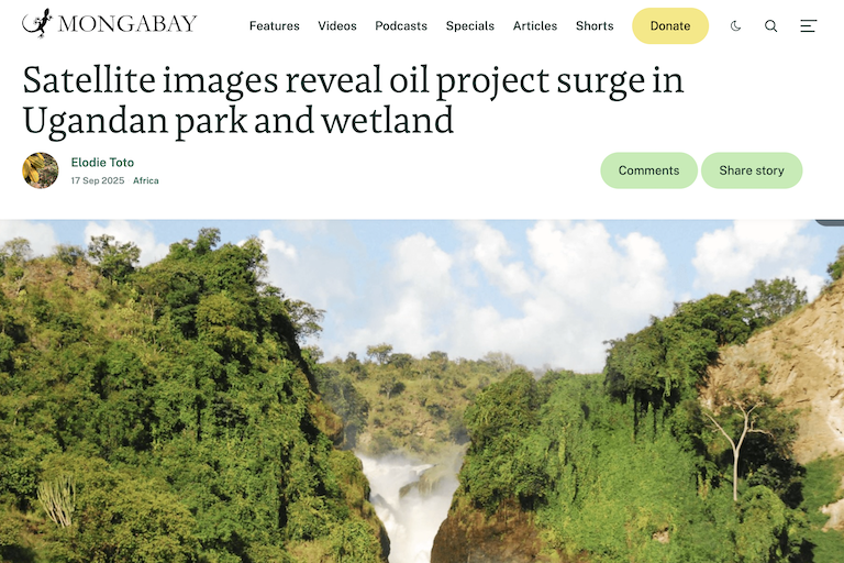 - Two oilfields — Kingfisher on its eastern shore and Tilenga near the northeastern terminus of Lake Albert — in active development there, by the Ugandan affiliate of Chinese National Offshore Oil Corporation (CNOOC) and Total E&P Uganda respectively, appear to be a threat to water quality and wildlife, a new op-ed argues.