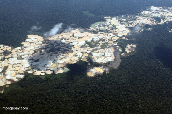 Aerial view of gold mining along the rivers of the Madre de Dios region of Peru. Photo by: Rhett A. Butler.