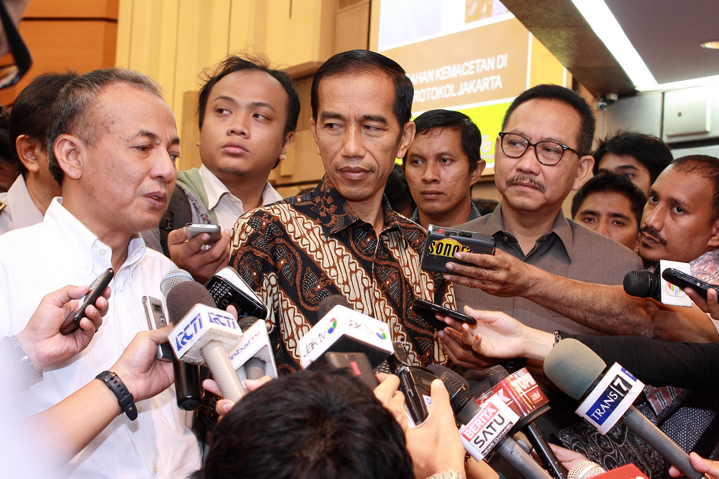Banner: Indonesian President Joko Widodo, shown here when he was governor of Jakarta in 2013. Image by Sigit Djatmiko/Flickr.