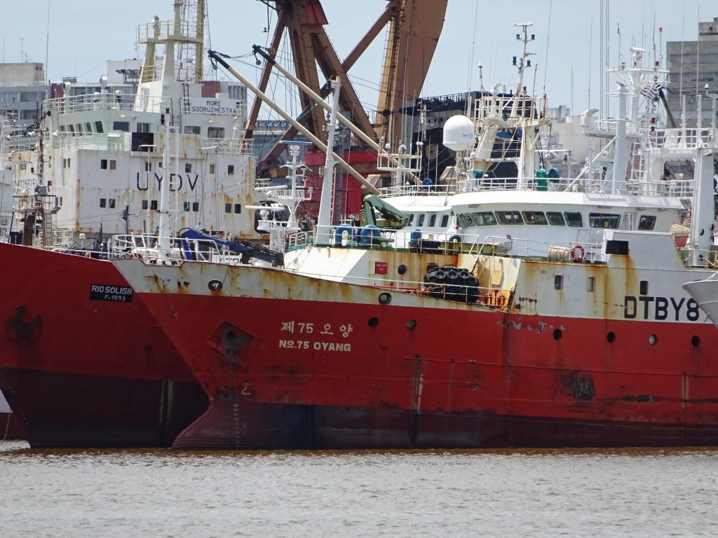 Banner image of foreign fishing boats in the Port of Montevideo, Uruguay, by Milko Schvartzman.