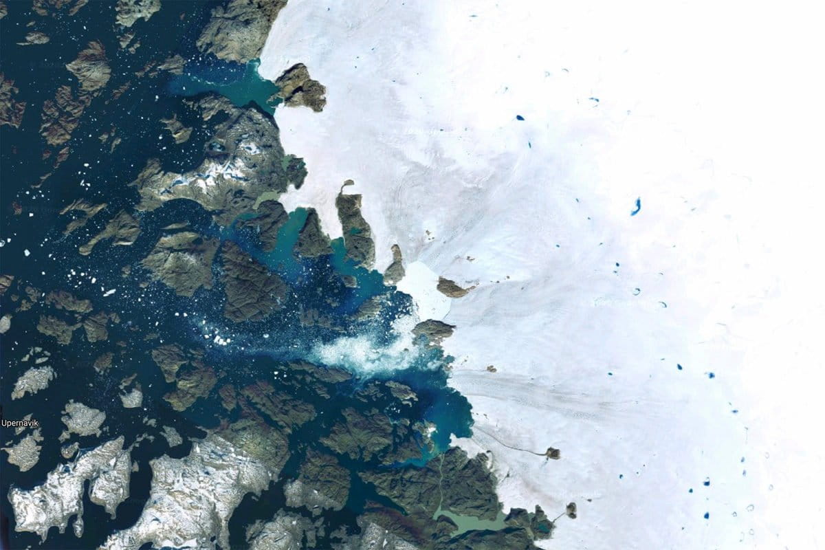 Banner image caption: Glaciers in Greenland in 2020. Image by Microsoft Zoom Earth.