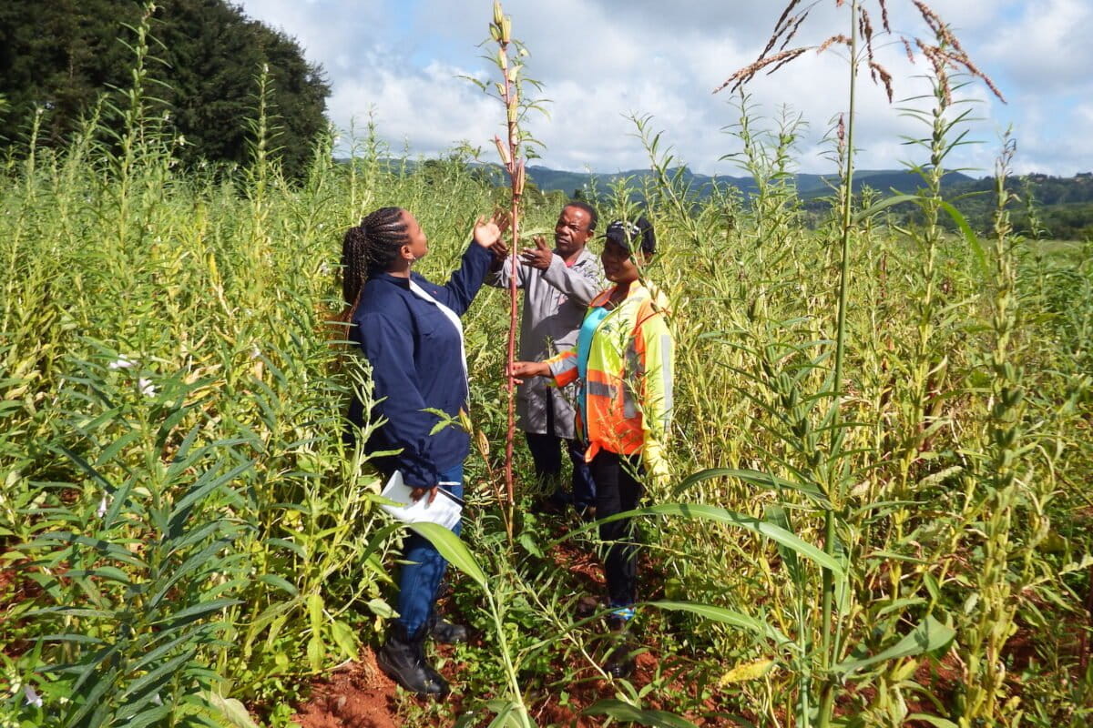 Banner Image: WorldVeg and Ministry of Agriculture staff admiring a superior variety of okra in the nation of Eswatini. Photo courtesy of WorldVeg.