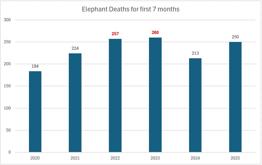 In comparison, the same period in 2022 and 2023 saw 257 and 260 deaths being recorded, respectively — both higher than the total for 2025 — debunking an unusual spike of elephant deaths as claimed by some.