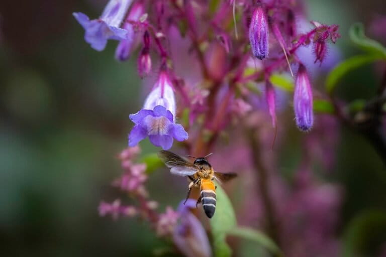 While some Strobilanthes species bloom only once every 12 years, others flower annually, providing nectar for the bees. The mass nelu bloom, Punchihewa notes, is a bonanza for these bees, which typically leave the hill country again around October-November, after the end of nelu bloom.