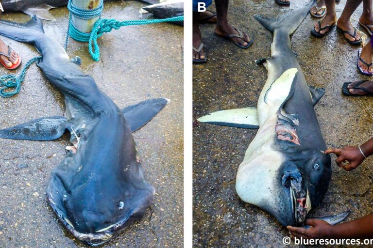 The individual, measuring 2.6 m (8.5 ft), was accidentally caught in a surface tuna gillnet set by a multiday fishing vessel off Sri Lanka’s west coast. Curious fishers, unfamiliar with the strange catch, brought it ashore at Beruwala Fishery Harbour, where it was handed over to the authorities.