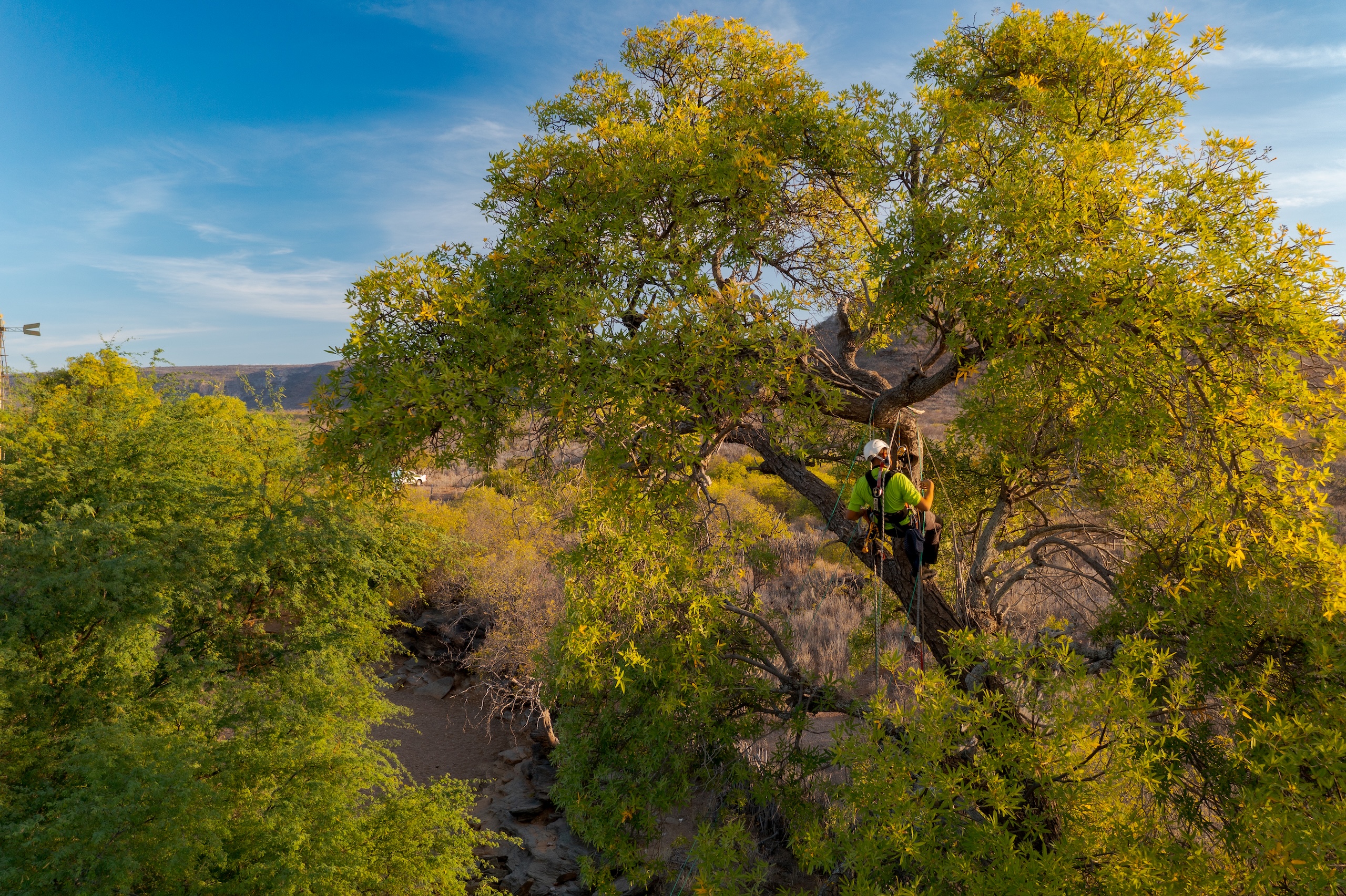 The team of biologists and veterinarians used mist nets to capture birds from the area, from which they then took feather, fecal and oral and cloacal swab samples. With the help of local community field assistants, the team also climbed trees near the breeding center to collect samples from blue-winged macaw nests, a parrot species that frequently comes into contact with Spix’s macaws. The assessment of the facilities, sanitary conditions, biosafety measures and bird welfare was conducted by veterinarians from partner institutions and Federal Police experts.