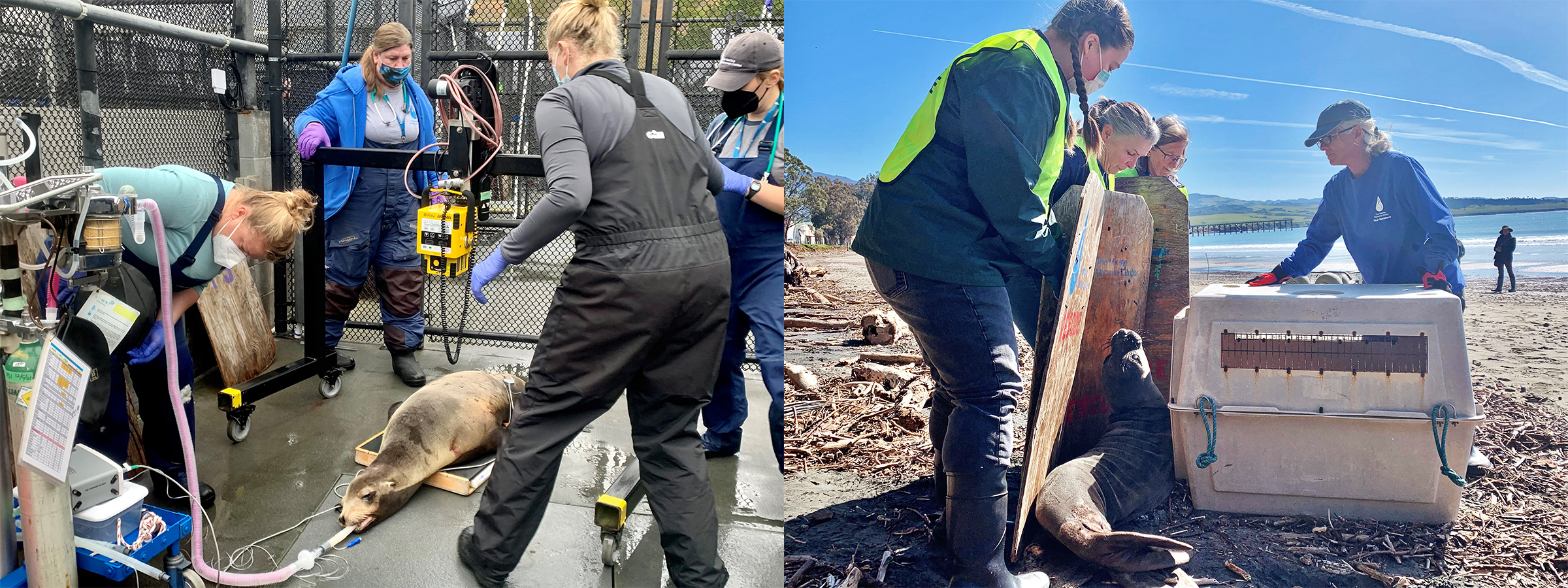 But there was good news. Four recovered animals had just been released at the Point Reyes seashore that morning, and I saw another adult male that lay in a fenced enclosure, anesthetized, being given a pre-release exam.
