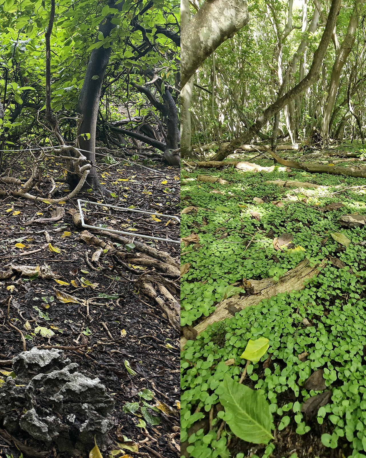 There were no Pisonia grandis seedlings in 2024; now, thousands are sprouting. The trees provide vital nesting habitat for seabirds, including red-footed boobies (Sula sula), white terns (Gygis alba) and black noddies (Anous minutus).